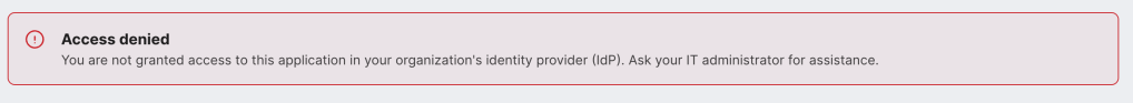 Access Denied: You are not granted access to this application in your organization’s identity provider (IdP). Ask your IT administrator for assistance.